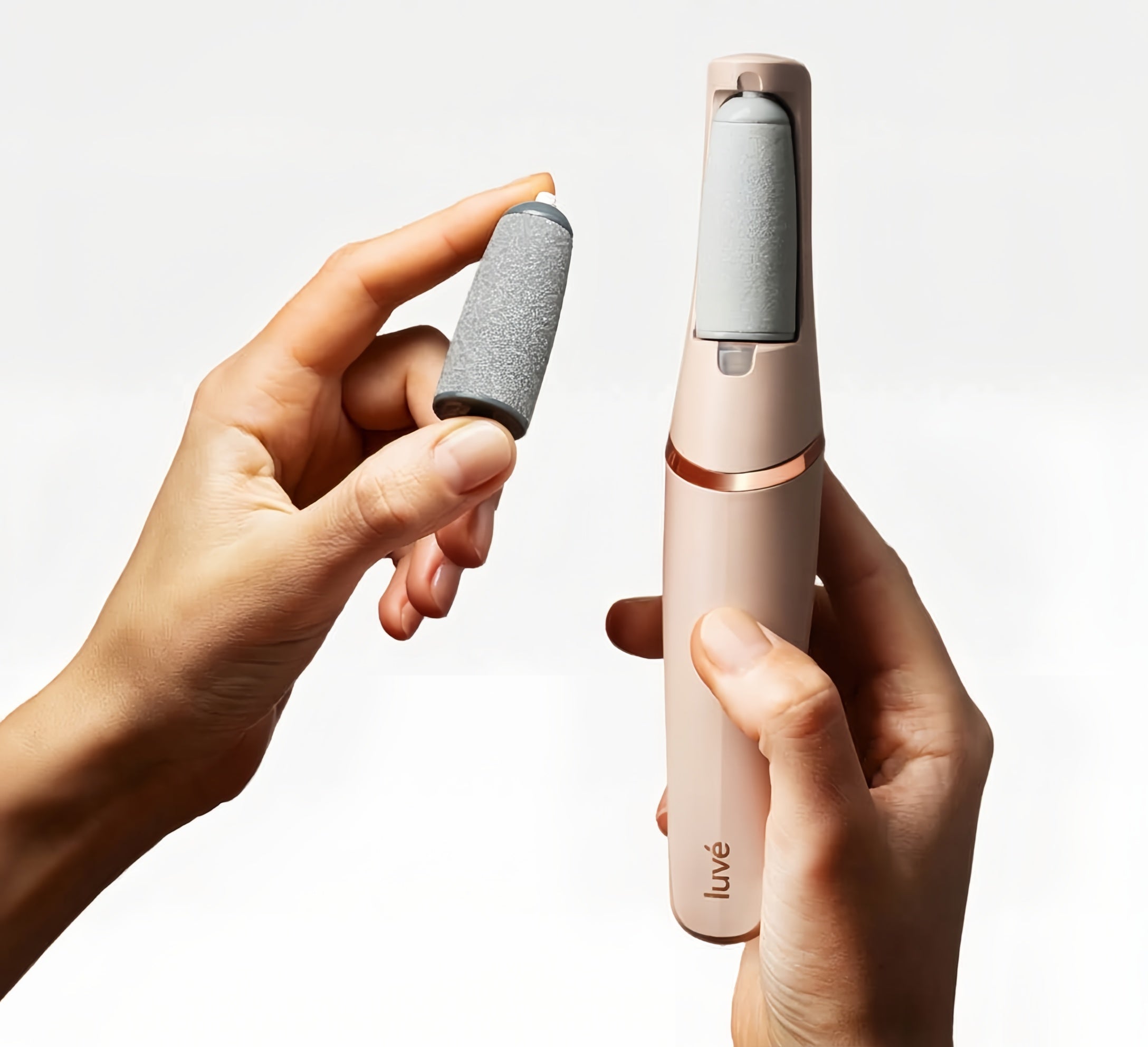 Brzovrteći valjak Luvé Silk 3 Pro rotira brzinom od 2.000 okretaja u minuti, trenutno uklanjajući suhu kožu, duboke pukotine i tvrdokorne žuljeve – potpuno bezbolno. Jednostavan za korištenje. Punjiv i s mogućnošću zamjene valjaka.
